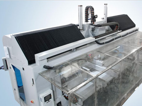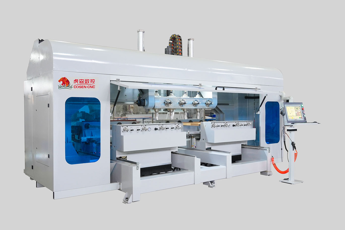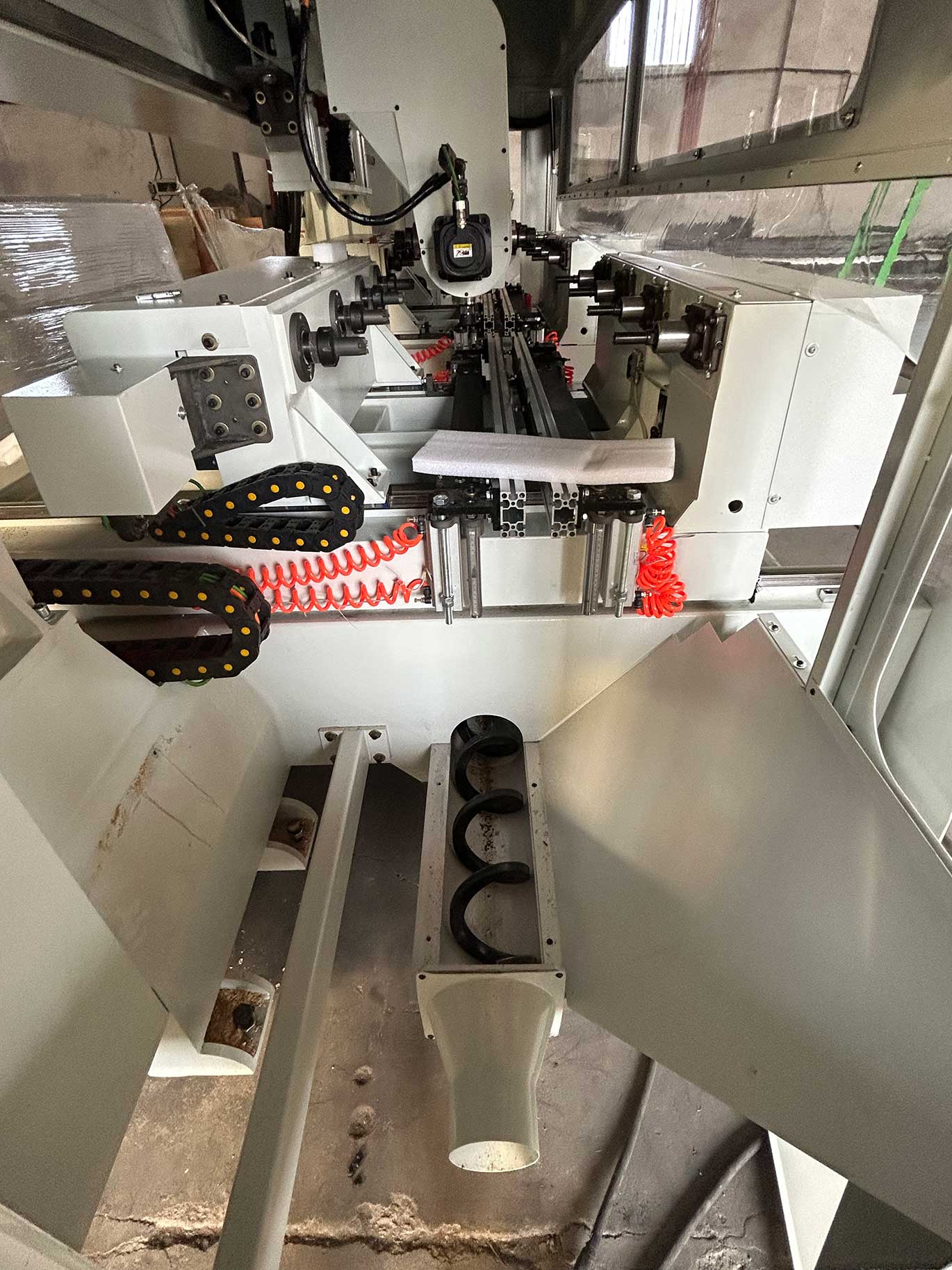 5軸鑽銑加工中心一次生產4根,雙工位交替工作,生產效率高。適合異形料的加工。