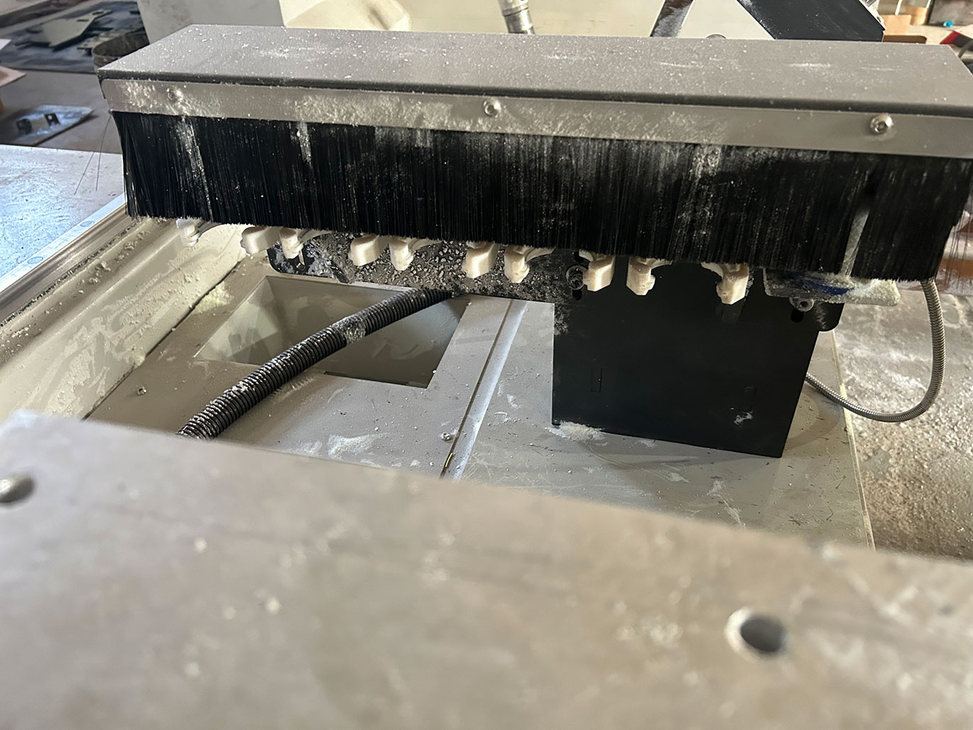 5軸鑽銑加工中心專業生產餐椅扶手,雙工位交替工作,生產效率高。