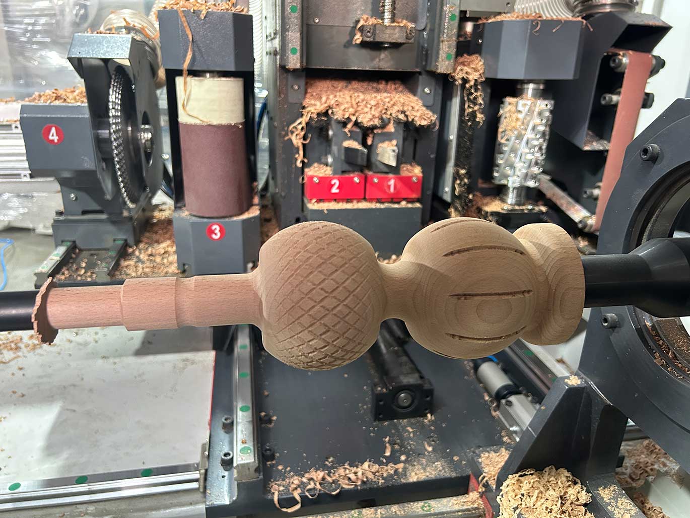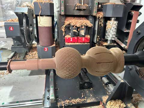 5軸數控車床一共14工序, 自動上下料,有RTCP 功能。可以車,銑,鋸,鑽孔,拉槽,鏤空,自動砂光, 多功能一體機。