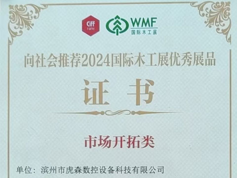 2024年9月11日-14日,CIFF上海WMF國guo際ji木mu工gong展zhan在zai上shang海hai虹hong橋qiao國guo家jia會hui展zhan中zhong心xin盛sheng大da開kai幕mu。濱bin州zhou虎hu森sen數shu控kong設she備bei科ke技ji有you限xian公gong司si出chu席xi參can加jia了le此ci次ci展zhan會hui,憑ping借jie卓zhuo越yue的de產chan品pin實shi力li和he創chuang新xin精jing神shen,在zai眾zhong多duo參can展zhan企qi業ye中zhong脫tuo穎ying而er出chu,榮rong獲huo優you秀xiu展zhan品pin證zheng書shu。