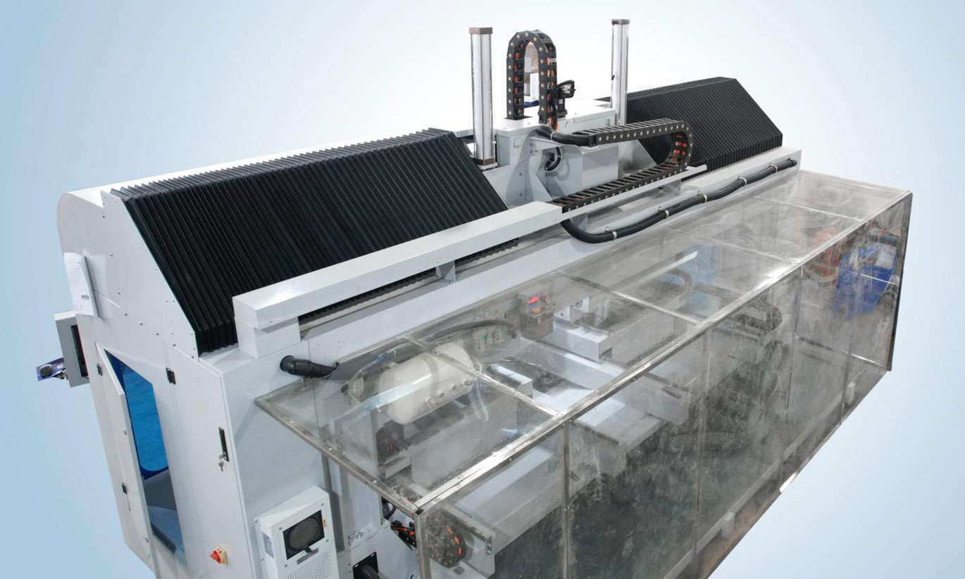 5軸鑽銑加工中心一次生產4根,雙工位交替工作,生產效率高。適合異形料的加工。