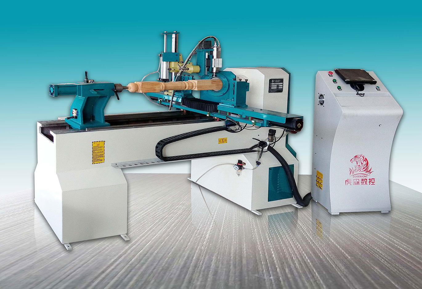 車銑雕(圓雕+平雕)多功能一體雙刀數控木工車床-W係列。設計合理,結構穩定,床身整體鑄造,集車、銑、麻花、拉槽、鏤空、圓雕、平雕功能於一體,複雜工藝一步到位。獨特雙刀設計,分工明確,粗車與精車高效配合,確保加工精度可達±0.1mm。配備先進CNC控製係統,操作簡單,自動生成程序文件,快速轉化為精準加工程序。無論是樓梯大小立柱、家具部件、工藝品,還是雕花裝飾都能高效完成加工。