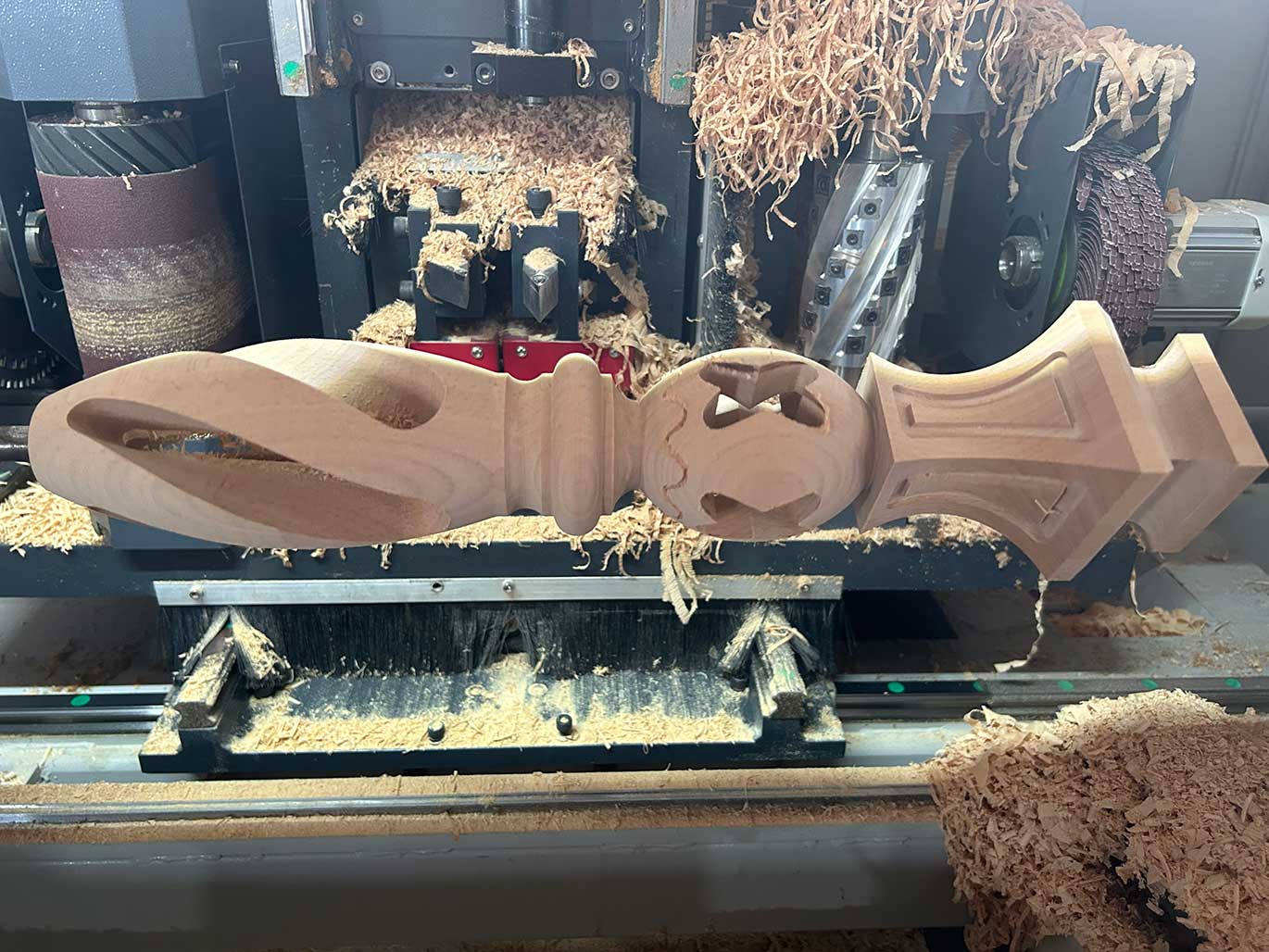 5軸數控車床一共14工序, 自動上下料,有RTCP 功能。可以車,銑,鋸,鑽孔,拉槽,鏤空,自動砂光, 多功能一體機。